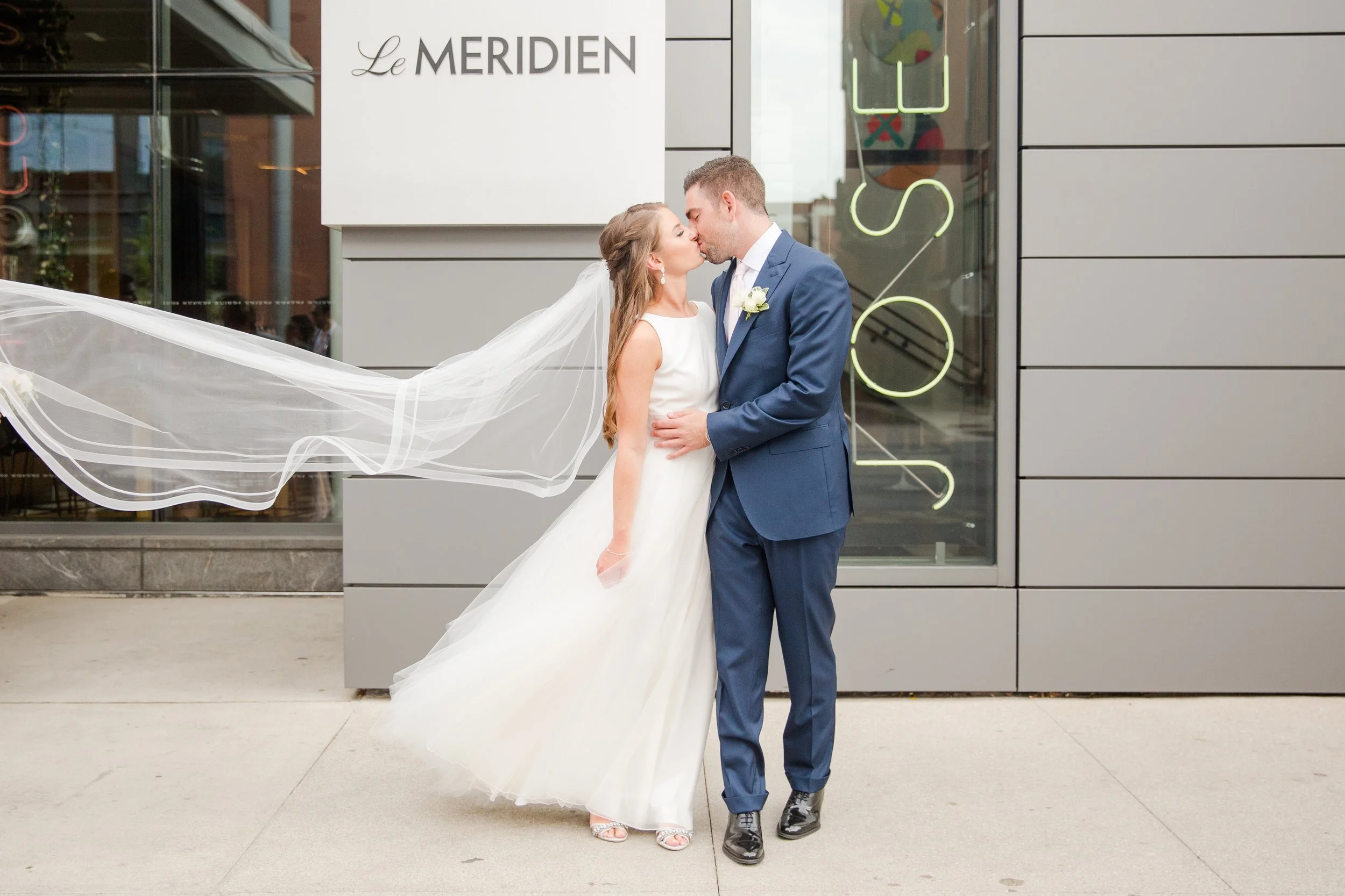 “We had the most wonderful experience working with Le Méridien for our wedding! From the moment we arrived for our rehearsal and throughout the entire wedding, everything was so stress-free. The staff could not have been more amazing to work with and everyone truly went above and beyond. The spaces we used for our ceremony, cocktail hour and reception were exactly what we were looking for. Simple, neutral and modern with Short North views.”